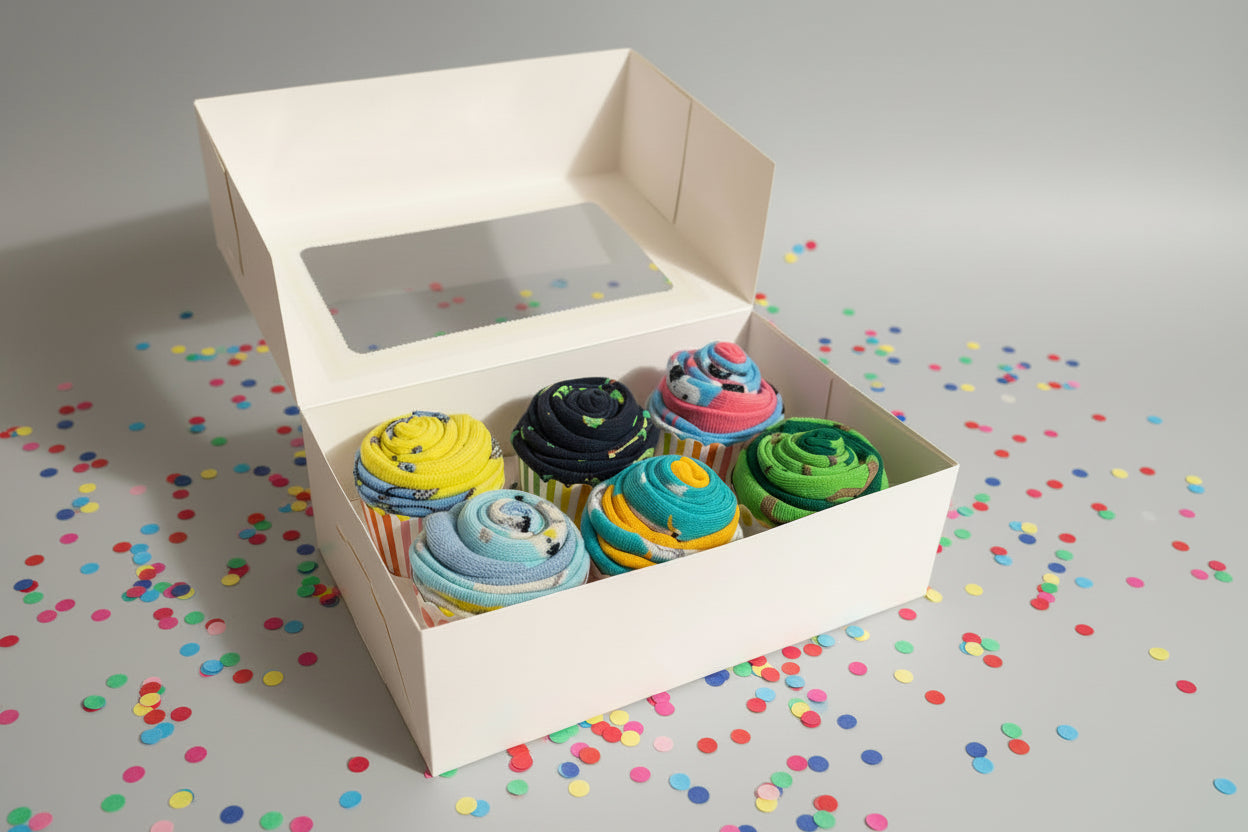 Say It With Socks is a gift delivery service with a twist, socks that look like cupcakes! Each pair is creatively rolled and presented in a charming cupcake box, turning everyday essentials into delightful surprises. We believe socks shouldn’t be boring and gifts shouldn’t be predictable. That’s why we created a vibrant, feel-good experience where comfort meets creativity. From sweetening a colleague’s day to surprising Dad or celebrating love with a playful touch, our sock packs are designed for every occasion and every personality.